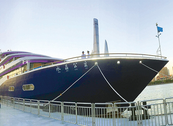 ????近日,七〇二所為上海強(qiáng)生集團(tuán)有限公司設(shè)計(jì)的休閑餐飲觀景船“水晶公主號”停靠黃浦江與游客見面。
