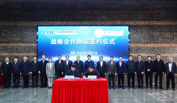 12月21日,中國船舶集團有限公司在南京分別與南京航空航天大學(xué)、江蘇科技大學(xué)簽署戰(zhàn)略合作協(xié)議。中國船舶集團黨組書記、董事長雷凡培,黨組副書記、總經(jīng)理楊金成,黨組成員、副總經(jīng)理錢建平、杜剛,南航黨委書記鄭永安,黨委副書記、校長單忠德,江科大黨委書記葛世倫,黨委副書記、校長周南平等領(lǐng)導(dǎo)出席簽約儀式。