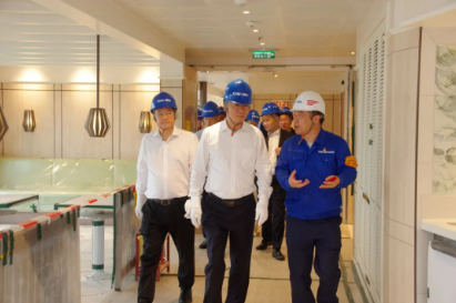 辛國斌一行深入考察國產首制大型郵輪建造現場,實地了解大型郵輪工程進展和技術攻關情況,并前往集配中心對外高橋造船物流倉儲數字化建設和智能倉儲管理進行調研。