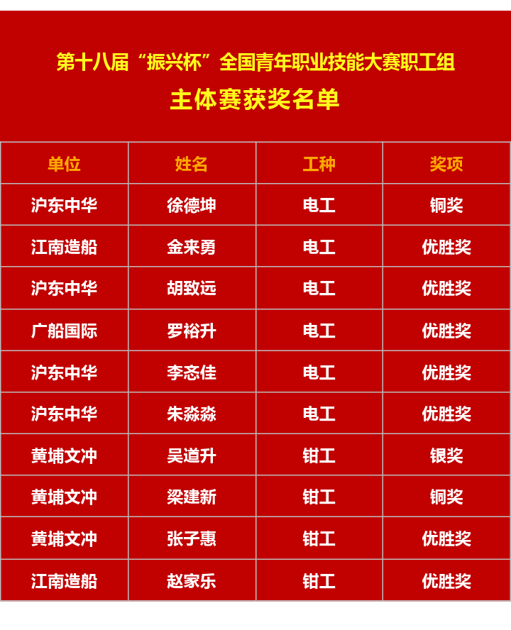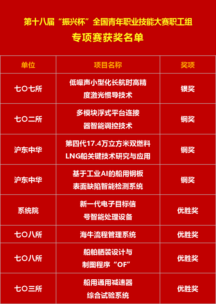 船舶青年在第十八屆“振興杯”全國青年職業(yè)技能大賽和創(chuàng)新創(chuàng)效競賽中獲佳績