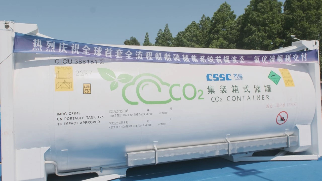 2024年5月10日,“全球首套全流程船舶碳捕集系統首罐液態二氧化碳接收儀式暨交流會” 在上海舉辦,中國船舶集團所屬上海齊耀環??萍加邢薰緦抖诵遁d的首罐液態二氧化碳正式交付使用方,標志著船用碳捕集技術在全球范圍內首次完成“二氧化碳捕集-液化存儲-卸岸-轉運-再利用”的全流程生態閉環,成為船用碳捕集產業里程碑式的案例。