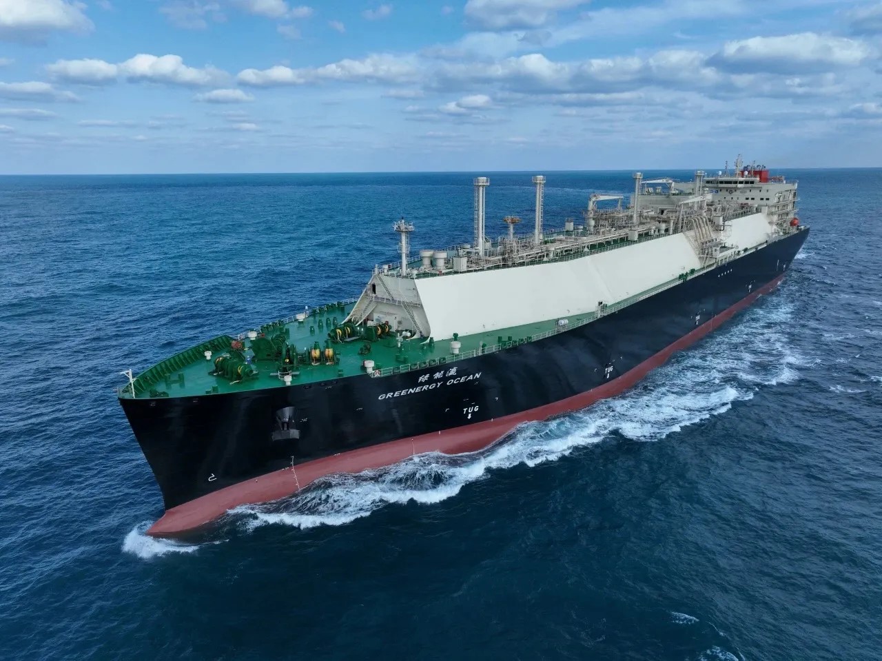2024年5月15日,由滬東中華自主研發設計建造的全球首艘第五代“長恒系列”17.4萬立方米大型液化天然氣(LNG)運輸船“綠能瀛”號,較合同期提前5個月命名交付。該型船可搭載多系列圍護系統,尤其是搭載最新一代的NO96 Super+系統時,蒸發率比上一代L03+系統降低15%,可通達全球各大洲120個LNG岸站,具有卓越的全球通用性。