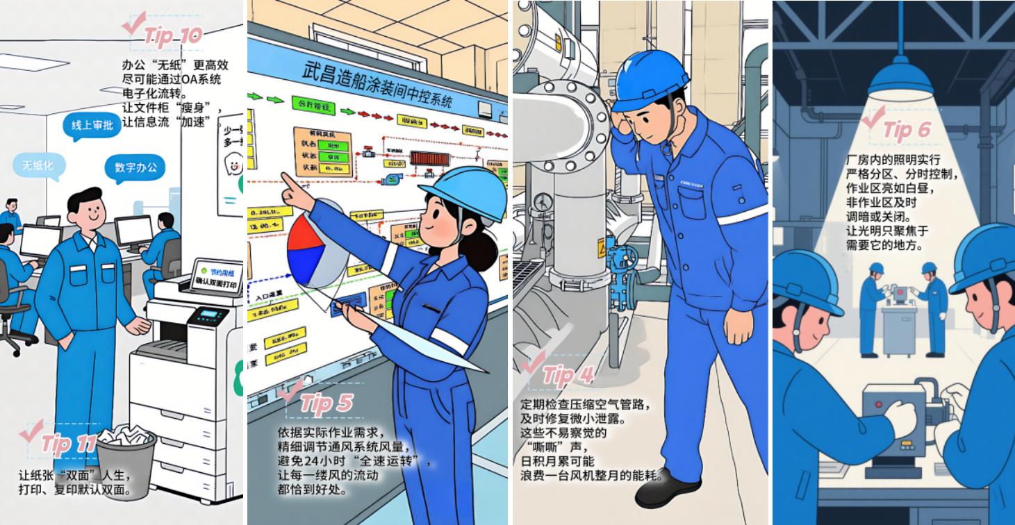 江南造船通過宣教結(jié)合的方式,組織開展了形式多樣、內(nèi)容豐富的節(jié)能宣傳活動(dòng)。圍繞節(jié)能宣傳周活動(dòng)主題,專門編制《2025年“全國(guó)節(jié)能宣傳周”——節(jié)能管理學(xué)習(xí)》的班組學(xué)習(xí)材料,對(duì)每個(gè)員工進(jìn)行宣貫;集中開展“我為節(jié)能獻(xiàn)一策”活動(dòng),面向全體員工征集節(jié)能建議,助推節(jié)能減排、綠色低碳理念進(jìn)生產(chǎn)、進(jìn)辦公、進(jìn)班組;組織專項(xiàng)節(jié)能檢查,對(duì)生產(chǎn)、辦公區(qū)域的能源使用情況進(jìn)行自查自糾,進(jìn)一步強(qiáng)化員工節(jié)能降碳意識(shí)。