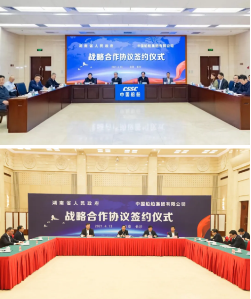 4月13日,中國船舶集團(tuán)有限公司與湖南省人民政府通過“云簽約”方式簽署戰(zhàn)略合作協(xié)議。中國船舶集團(tuán)黨組書記、董事長雷凡培,黨組副書記、總經(jīng)理?xiàng)罱鸪桑h組成員、副總經(jīng)理盛紀(jì)綱,湖南省委書記、省人大常委會(huì)主任許達(dá)哲,省委常委、省委秘書長張劍飛,省委常委、省國資委黨委書記姚來英出席簽約儀式。中國船舶集團(tuán)黨組成員、副總經(jīng)理錢建平,湖南省人民政府副省長陳飛分別代表雙方在協(xié)議上簽字。簽約前,雙方圍繞共同服務(wù)國家戰(zhàn)略、深入推進(jìn)雙方戰(zhàn)略合作進(jìn)行了交流。