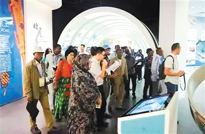 來自非洲12個發展中國家基礎設施建設及規劃相關部門的高級官員在徐工集團展廳內參觀。