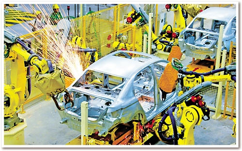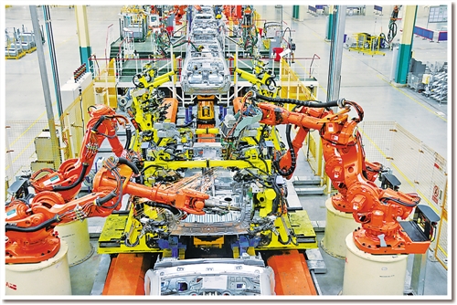 日前,記者在東風(fēng)汽車公司旗下神龍汽車公司成都工廠焊裝車間看到,占地面積約10個(gè)足球場(chǎng)的車間儼然就是一個(gè)“機(jī)器人王國(guó)”:442臺(tái)各種機(jī)器人都在忙碌著,所有點(diǎn)焊、弧焊、激光焊、螺柱焊、涂膠、包邊、鉚接、部件搬運(yùn)等“重活、累活”全部由機(jī)器人自動(dòng)完成。焊裝分廠廠長(zhǎng)孫繼勝介紹說(shuō),除442臺(tái)機(jī)器人外,車間還有另外一個(gè)“撒手锏”??六面體轉(zhuǎn)臺(tái)設(shè)備。“原來(lái)生產(chǎn)1個(gè)車型要建6條生產(chǎn)線,現(xiàn)在1條生產(chǎn)線就可以生產(chǎn)6種車型。”孫繼勝說(shuō)。