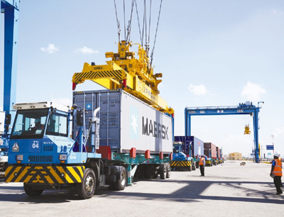 內(nèi)羅畢郊區(qū)的集裝箱內(nèi)陸港里,高聳的龍門架起重機(jī)將一個個集裝箱從貨運列車裝載到排隊等待的卡車上。肯雅塔在啟動儀式上表示,這是一個極具轉(zhuǎn)變意義的工程,“高質(zhì)量的公共基礎(chǔ)設(shè)施建設(shè)能給我們老百姓的生活帶來轉(zhuǎn)變,促進(jìn)經(jīng)濟(jì)增長、創(chuàng)造就業(yè)、提高青年人的知識技能”。這一內(nèi)陸港通過“高速、高質(zhì)、高效”的標(biāo)準(zhǔn)軌鐵路網(wǎng)絡(luò)將蒙巴薩港與內(nèi)陸連接在一起,為當(dāng)?shù)鼐用駝?chuàng)造就業(yè)與財富。