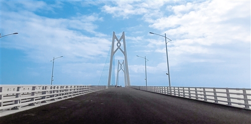 港珠澳大橋主體工程包含22.9公里主體跨海橋梁及6.7公里的沉管隧道。當記者坐上汽車,從珠海洪灣這端駛上大橋,感受到的是雙向六車道的平坦通暢。這座前后都望不到頭的大橋上,建有3段斜拉橋,分別是“風帆”“海豚”“中國結”造型,寓意深遠。
