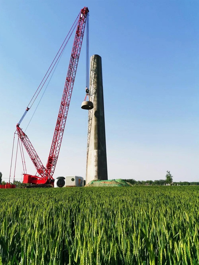 中國海裝首臺采用140米輪轂高度鋼混塔架的機組完成吊裝