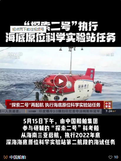 5月15日下午,我國“探索二號”科考船從海南三亞啟航,執行2022年度深海海底原位科學實驗站第二航段的海試任務。