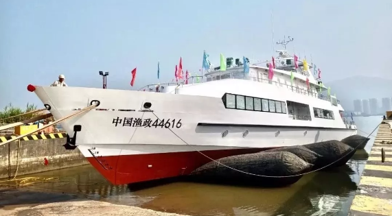 ????11月11日由廣州船舶及海洋工程設計研究院自主研發設計的新一代海洋指揮公務船順利下水。該型船總長42.5米,型寬7.6米,型深3.1米,排水量160噸,在安全、防腐、環保等方面均應用了不少新技術,交付后主要用于執行粵港澳大灣區海域的海洋和漁業行政管理指揮、監督檢查等任務。