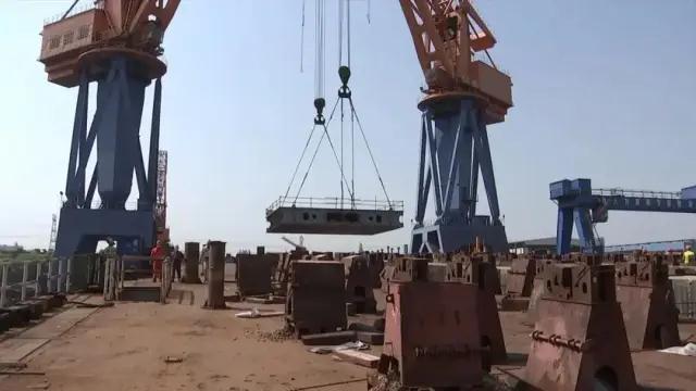 ????4月15日上午,中國船舶集團旗下中船澄西完成下水、上船臺、開工三大生產節點。