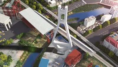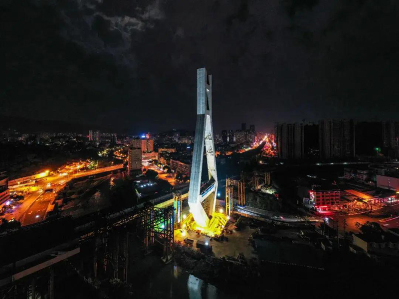 2020年4月10日,龍巖大橋的主塔曾順利完成69度的轉體施工。本次是該橋建設過程中完成的第二次轉體。總重2.36萬噸的大橋主塔和塔梁精準完成了21度的逆時針旋轉,整個過程歷時近1個小時。