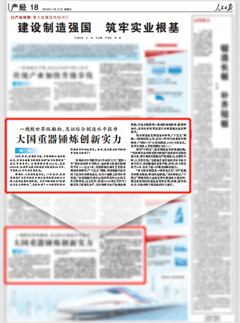 今天,人民日報產(chǎn)經(jīng)專版在《產(chǎn)經(jīng)觀察·著力發(fā)展實體經(jīng)濟》第一期報道《建設(shè)制造強國筑牢實業(yè)根基》中將鏡頭對準(zhǔn)了中國船舶集團。