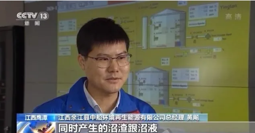 江西余江縣中船環境再生能源有限公司總經理 黃飚:沼氣提純得到天然氣,實現資源化,產生的沼渣跟沼液,我們加工制備有機肥用于作物生長。