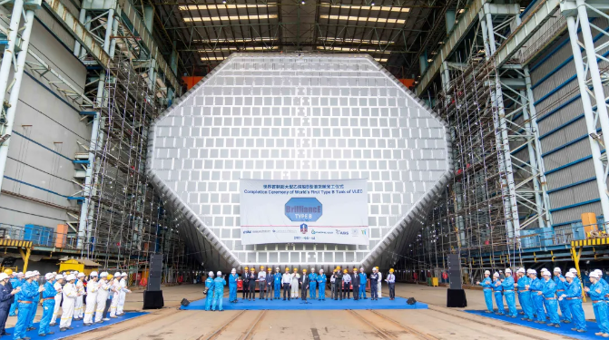 日前,全球最大B型菱形液貨艙在江南造船完工,將被用于世界首制99000立方米超大型液化乙烷運輸船(VLEC)。江南造船自主研發的B型艙 若配置不同的艙體材料和絕緣系統  ,可適用于裝載不同溫度的液化氣貨品。