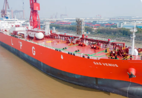 該型船為全球最大雙燃料超大型液化氣船(VLGC),配置4個超大型液罐,能夠滿載86000立方米的液化氣,如果是直接供給上海這座超大型城市,可以使用超過兩天。