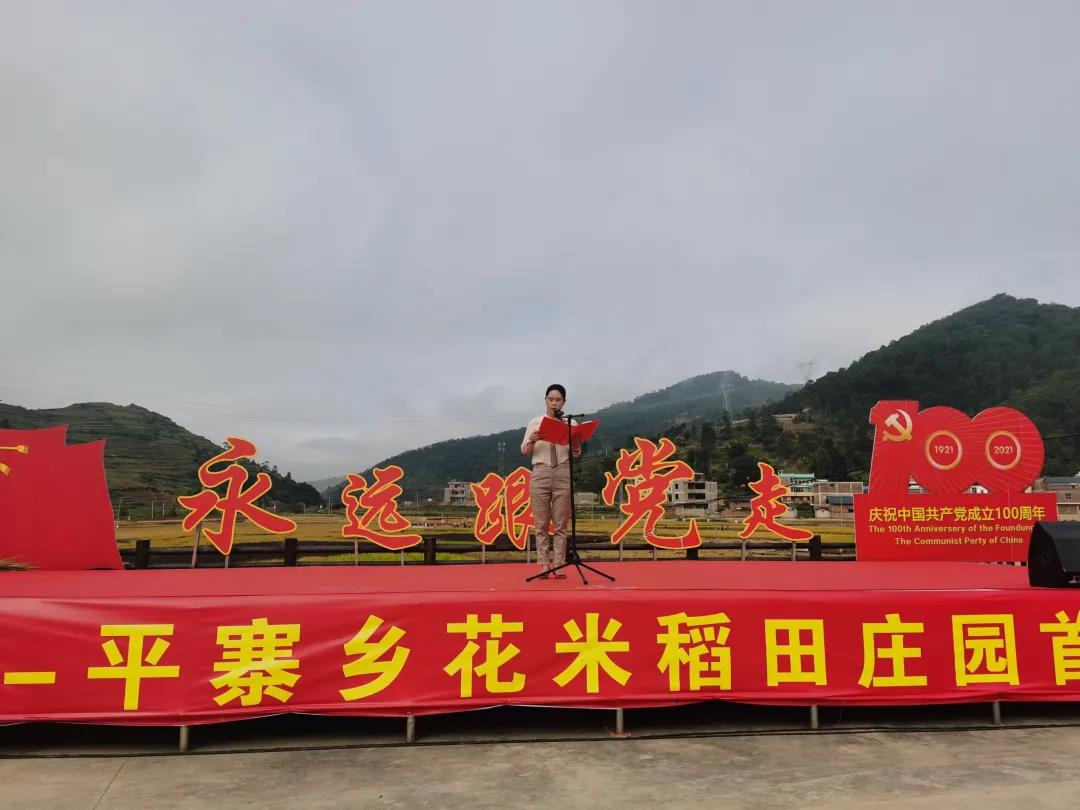 以節(jié)聚勢,以節(jié)聚產(chǎn),以節(jié)聚人,平寨鄉(xiāng)壯族百姓以獨特的方式,慶祝祖國生日,分享豐收喜悅,總結(jié)鞏固脫貧攻堅成果與鄉(xiāng)村振興有效銜接經(jīng)驗,探索綠色發(fā)展、質(zhì)量發(fā)展新思路,實踐對口幫扶、內(nèi)生動力資源增效新方法,構(gòu)建產(chǎn)業(yè)發(fā)展、農(nóng)旅融合鄉(xiāng)村振興新路徑,譜寫平寨發(fā)展新篇章。平寨鄉(xiāng)黨委書記陸華麗在開幕式致辭中指出,舉行花米稻田莊園首屆新米節(jié),是平寨鄉(xiāng)“以節(jié)聚勢,以節(jié)聚人,以節(jié)聚產(chǎn)”的重要舉措。近年來,平寨鄉(xiāng)堅持黨建引領(lǐng),務(wù)實創(chuàng)新的工作作風(fēng),各項事業(yè)蓬勃發(fā)展。脫貧攻堅勇創(chuàng)佳績,人居環(huán)境不斷改善,產(chǎn)業(yè)生態(tài)綠色發(fā)展,文化事業(yè)生機勃勃,民族團(tuán)結(jié)碩果累累,為鄉(xiāng)村振興戰(zhàn)略的實施打下了良好的基礎(chǔ)。