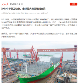 媒體聚焦|中國船舶滬東中華:全球最大集裝箱船出塢,產能恢復75%以上