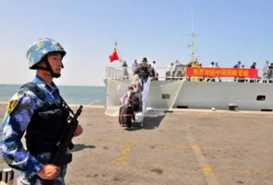 △今年2月,海軍第42批、第43批護航編隊在亞丁灣某海域舉行護航任務交接和分航儀式。