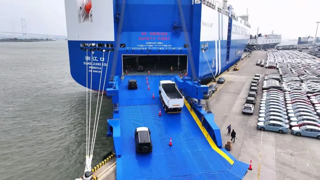 2024年12月14日, LNG雙燃料汽車運輸船“湘江口”輪首航靠泊廣州南沙汽車口岸,搭載一汽、吉利、奇瑞、長城、上汽、比亞迪等10余個國產(chǎn)品牌的近4000臺各型車輛出口駛往波斯灣市場?!跋娼凇陛喌募尤耄瑢⒏旄玫胤?wù)“一帶一路”經(jīng)貿(mào)往來,為全球汽車海運市場注入新的活力。