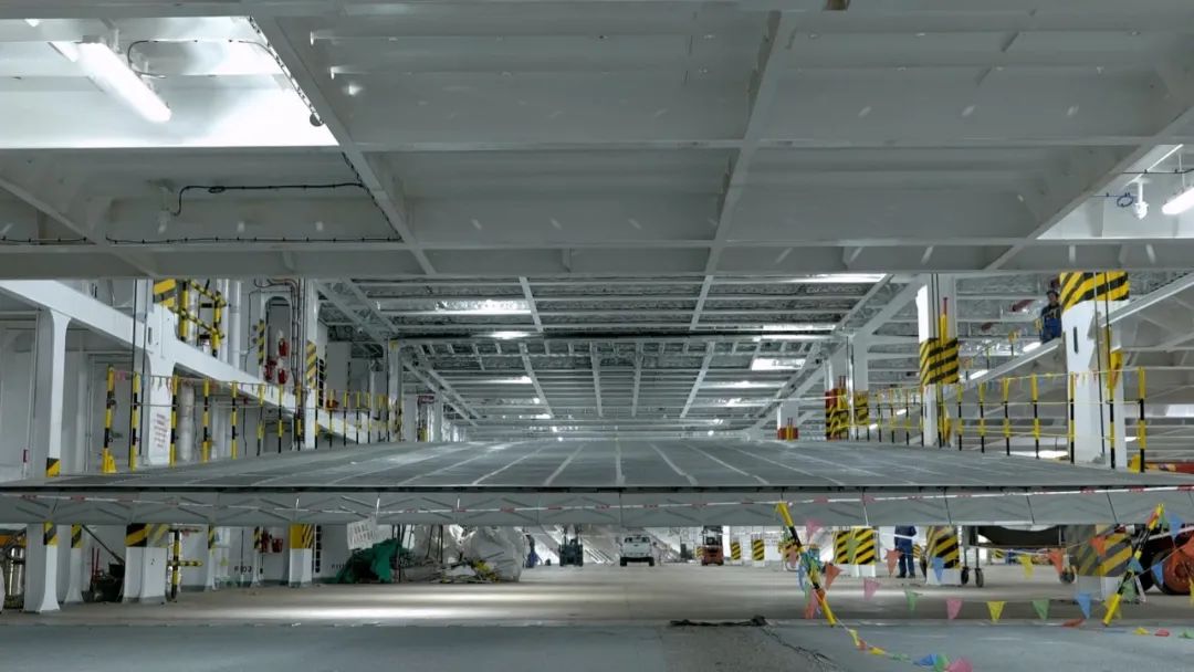 除了“薄”,船上承載車輛的甲板還有一個特點: 可根據(jù)汽車高度調(diào)整層高。 一艘船的滾裝設(shè)備和活動甲板多達100塊,船體搭載過程中任何一個環(huán)節(jié)出現(xiàn)偏差,都會導致活動甲板無法安裝。而廣船國際對船舶生產(chǎn)全過程實施嚴格的精度管理,目前已經(jīng)完全攻克相關(guān)技術(shù),真正實現(xiàn)了船舶工業(yè)體系的進階。