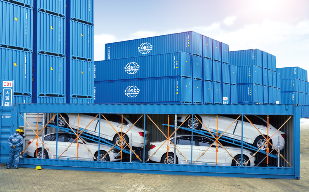 花式運輸?shù)牡谝徽惺羌b箱整車運輸。 通過集裝箱整車支架技術(shù),可自由選擇將2—4輛汽車裝入一個集裝箱內(nèi), 最大程度上節(jié)省平鋪擺放占用面積,可堆疊的三維布局如同為汽車打造了一幢安如磐石的“海上公寓”。